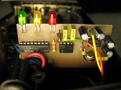 Die Datasette wurde mit einer "Bandinhaltskontrolle" ausgerüstet, um den Anfang eines aufgezeichneten Programms schneller finden zu können. Jedes Programm beginnt mit dem sogenannten "Header", ein Dauerton von ca. 10 Sekunden. Dieser wird mit Hilfe des Tondecoders LM567 erkannt und lässt die gelbe LED aufleuchten. Die grüne LED signalisiert Daten, die rote LED zeigt an, dass das Band leer ist.