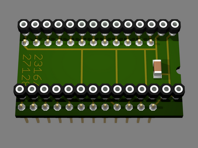 Dieser Adapter hilft beim Ersatz des oben aufgeführten nicht mehr erhältlichen originalen 2316-ROMs. Der Adapter wird in den Sockel der Floppy-Hauptplatine gesteckt und nimmt ein handelsübliches mit dem entsprechenden Code gebranntes EPROM des Typs 2764 oder 27128 ohne weitere Änderungen auf.