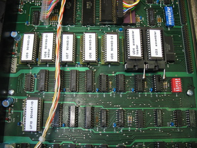 Dieses Foto zeigt die PET-Hauptplatine mit den nachgerüsteten ROM-Adaptern: