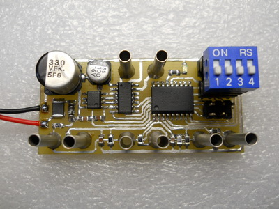 Hier wurden die Steuerungsaufgaben einem PIC16F628 von Microchip übertragen, und das nicht mehr erhältliche Motortreiber-IC TLE4205 wurde gegen den Nachfolger TLE4207 ersetzt. Abmessungen und Lage der Anschlüsse sind identisch mit dem Original-Modul, dabei konnte sogar eine nur einseitig ausgeführte Platine realisiert werden.