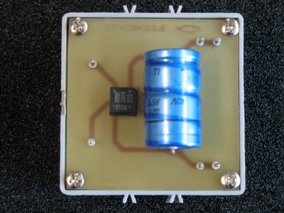 Der Gleichrichter Baustein besitzt die Eingänge ~ für Wechselstrom und die Ausgänge + und - der gleichgerichteten und geglätteten Gleichspannung.
