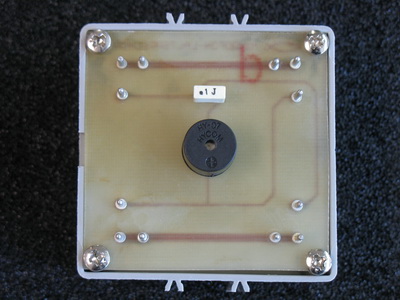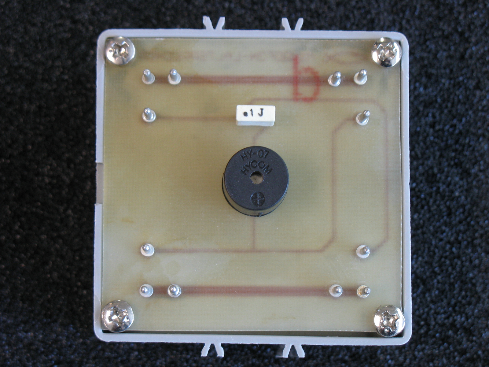 magnetischer Wandler (aus einem alten PC-Motherboard) mit erforderlichem Vorkondensator eingesetzt.